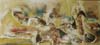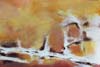 OISEAU TONNERRE ORCRE ACRYLIQUE SUR PAPIER MAROUFLÉ SUR BOIS